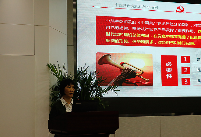 会上,党总支书记黄青同志组织集中学习新修订的《中国共产党纪律处分条例》。黄青书记从《中国共产党纪律处分条例》修订的意义、关键点、修改内容以及贯彻执行四个方面,对《条例》进行了详细的解读和学习。